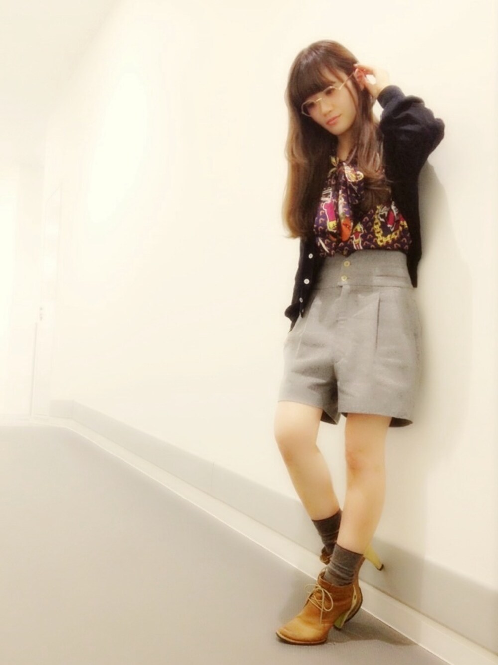 アーガイルやタータンではないけれど・・・。 ブリティッシュトラディショナルっぽく。 (アウターはPコート着用してましたー。) wool pantsはハイウエストなタイプだからインスタイルと、ヒールのブーティーで、のっぽ効果? 優等生STYLEにあえて眼鏡で、知性をプラス! ウェリントンだとかしこまりすぎちゃうかな?と、ここは丸メガネ。 このメガネはantique shopでお買い上げ。 まんまるじゃなく、あまり見かけない8角形がお気に召しました♡ shirt▷mercibeaucoup, cardigan▷used pants▷TOGA socks▷kiwanda boots▷Terra Plana eye wear▷vintage