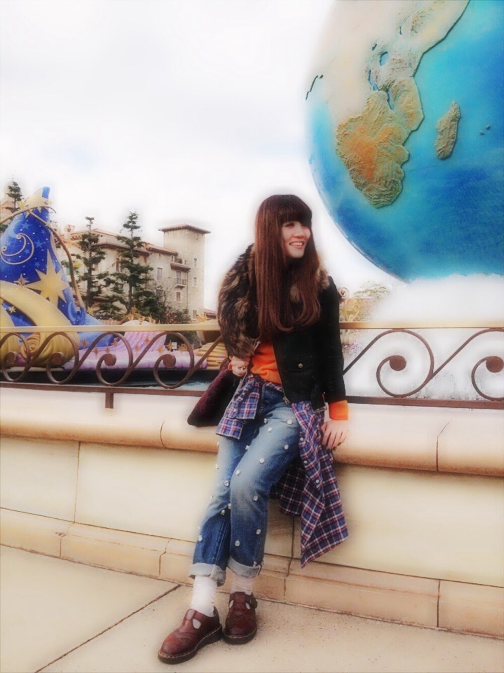 grunge style風で、おシゴト仲間とウキウキDisneySea! 防寒と歩きやすさ重視‼︎ grungeっときながら、TRESORのpantsで綺麗めにしちゃった矛盾…。 TRESOR、キラキラ可愛いしサイズもぴったりでお気に入り♡ photo by 二宮幸子 posing by 畠山 章 outer▷beautiful people shirt▷used pants▷Tu es mon TRESOR knit▷ENFOLD tippet▷sisii socks▷ANTIPAST shoes▷Dr.Martens bag▷archi