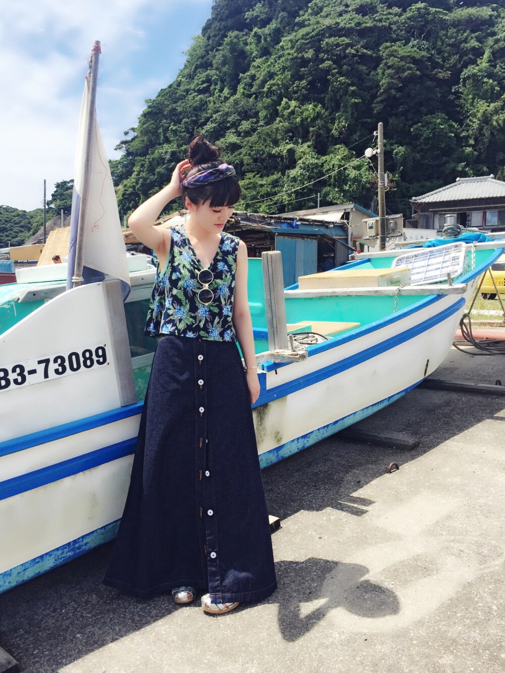 Yumiko Maruokaのデニムスカート「70’S DENIM MAXI SKIRT」を使ったコーディネート