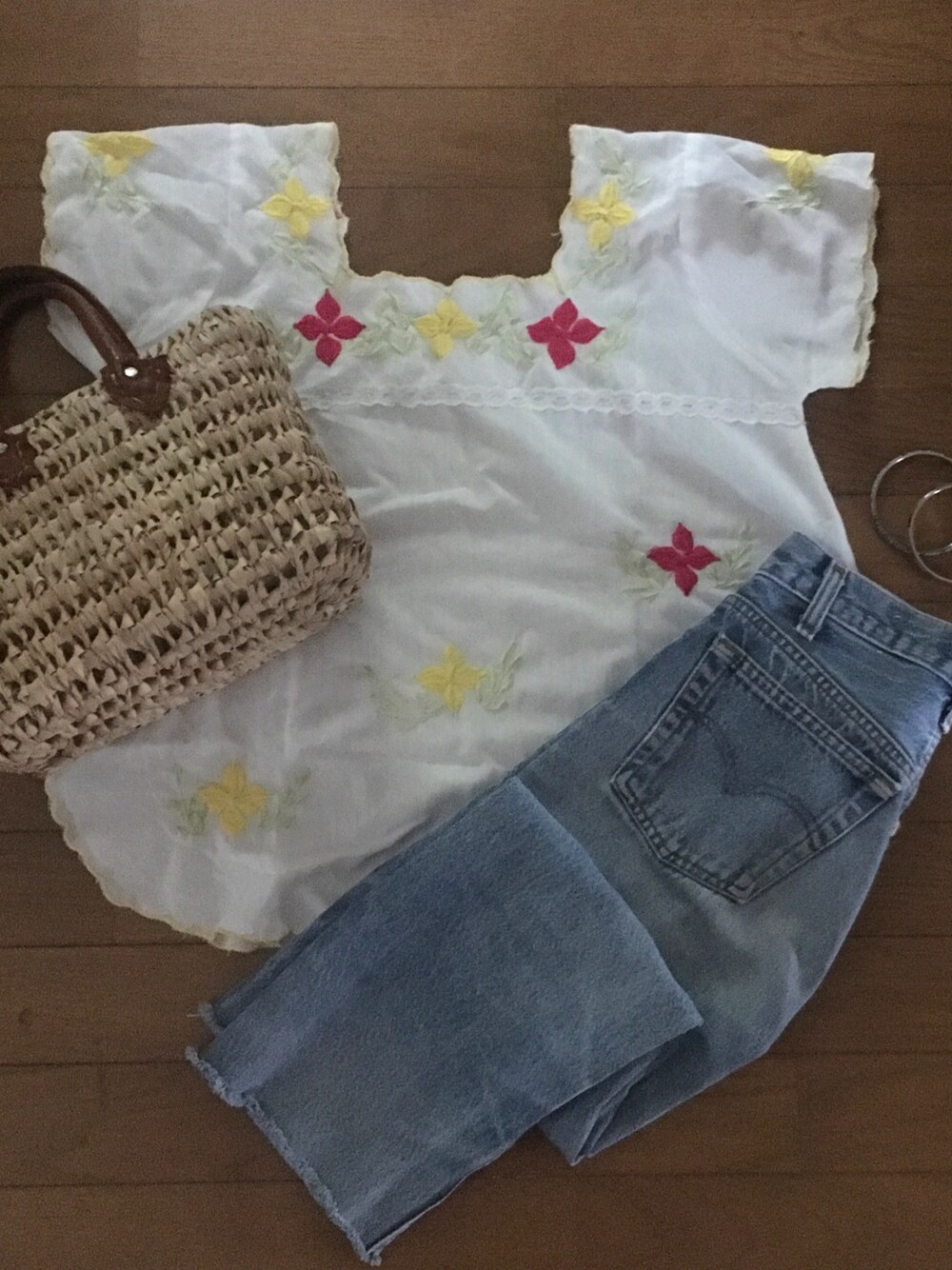 古着のリーバイスは母様がチョキチョキ切ってカットオフしました✂️