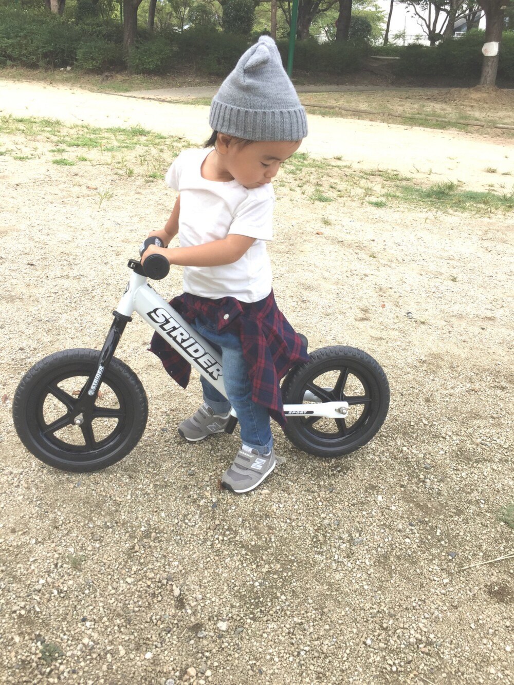 良い天気だったので公園でストライダーの練習٭¨̮ まだまだ乗れるようになるには時間がかかりそうかな😅