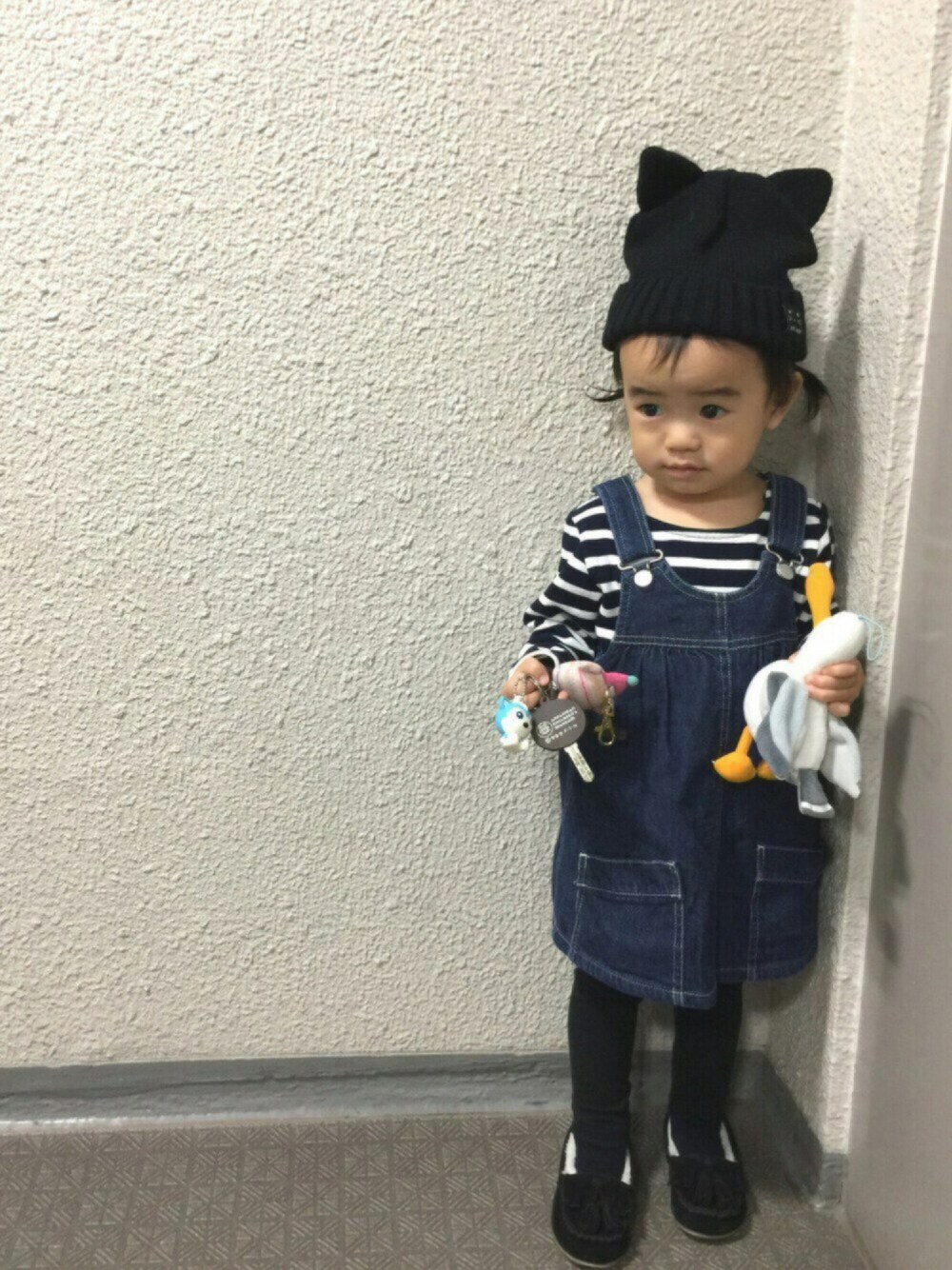 おはようございます〜😊 いつもいいね、SAVEほんまにありがとうございます〜〜❣️ 手に持ってるカモメは娘の大好きなニモに出てくる ちょーだいカモメのぬいぐるみです🐦 今日はこの子とお出かけするんやってさ、 このサロペットは姪っ子からのO・SA・GA・RI😚 後ろがリボンになってて可愛いーーー 母は微妙に出てる前髪がき・に・な・るーーー(´Д` )笑