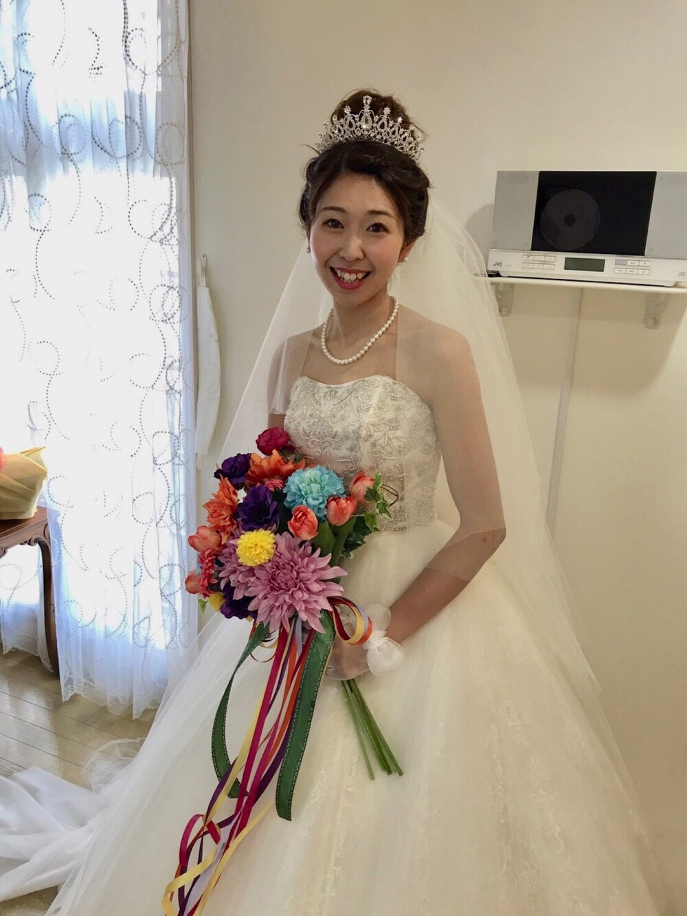 ❤︎2016 結婚式 振り返り❤︎ アニベルセル東京ベイ *ウエディングドレス 挙式時の髪型は大きいお団子にしました👰 ブーケはずっと取っておけるように生花ではなく プリザーブドフラワーを使用しました✨ 今でも玄関に飾っています 周りからは生花だと思ったと言ってもらえたので プリザーブドフラワーおススメです! 今でも玄関に飾っていますよ❣️ 手袋はリボンのついてるものを使用しています🎀
