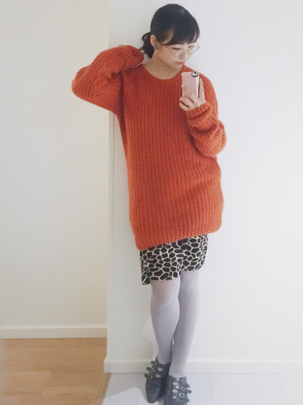 全身古着で キリン柄かわいい