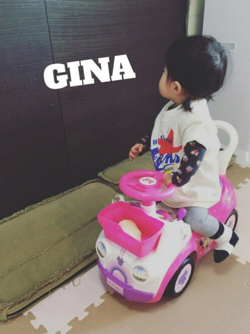used Hanes Tシャツコーデ♡ GINAさんの胃腸炎が、母に移りダウンしてました… が、復活✨💪 今日は、差し迫った保育園入園準備で、名前書き書き…シーツ縫い縫い…🏃🏃💨 GINAさん、全力で邪魔してきます… 少しでも、保育園生活が楽しく過ごせますように… 想いを込めて準備中… そして、ちょっと前まで、全然足がつかなかった🚗に、いつの間にか、足がついて自分で乗り降りまで出来るようになっていました…😭ちょっと感動…😭 暇な時は、ピンクの🚗のメンテナンスをするのが、最近のGINAさんの日課です…(笑)😂 いつも、ありがとうございます🙆