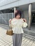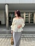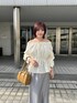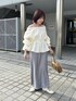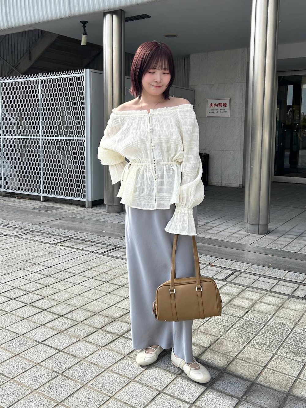 オフショルにサテンスカート合わせで女性らしいコーデに👠 ウエストも紐で絞って調節できるのでくびれも作れます! サテンスカートは全ゴムなので楽に履けますしポケットも付いているので機能性もバッチリです!