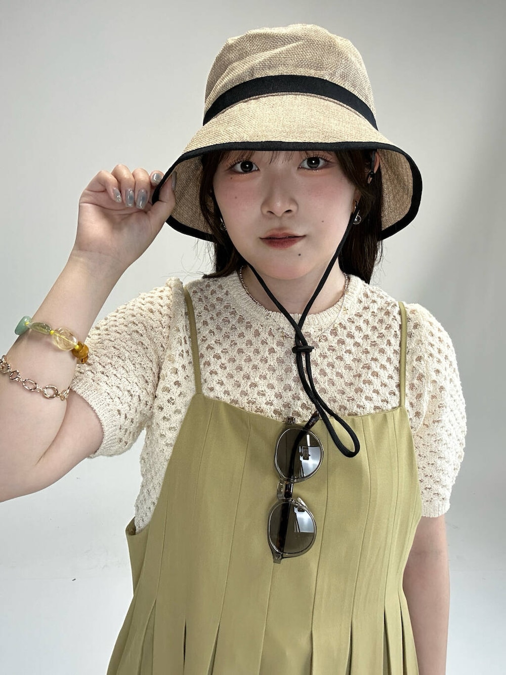 さき(KBF なんばCITY)のメガネ「ボストンシェイプサングラス」を使ったコーディネート