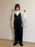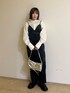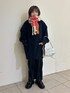 ネイビーのワントーンコーデ🫐 ワンピースは体のラインを拾わずスッキリとした印象で着ていただけます! マフラーとバッグを差し色で入れて冬に映えるコーデにしてみました!