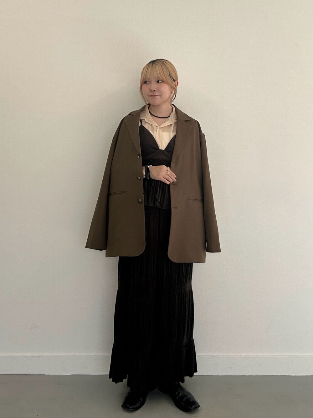 セットアップは着ててすごく楽なのに、体をスッキリ見せてくれます! ブラウンのジャケットと合わせてワントーンコーデにしてみました!