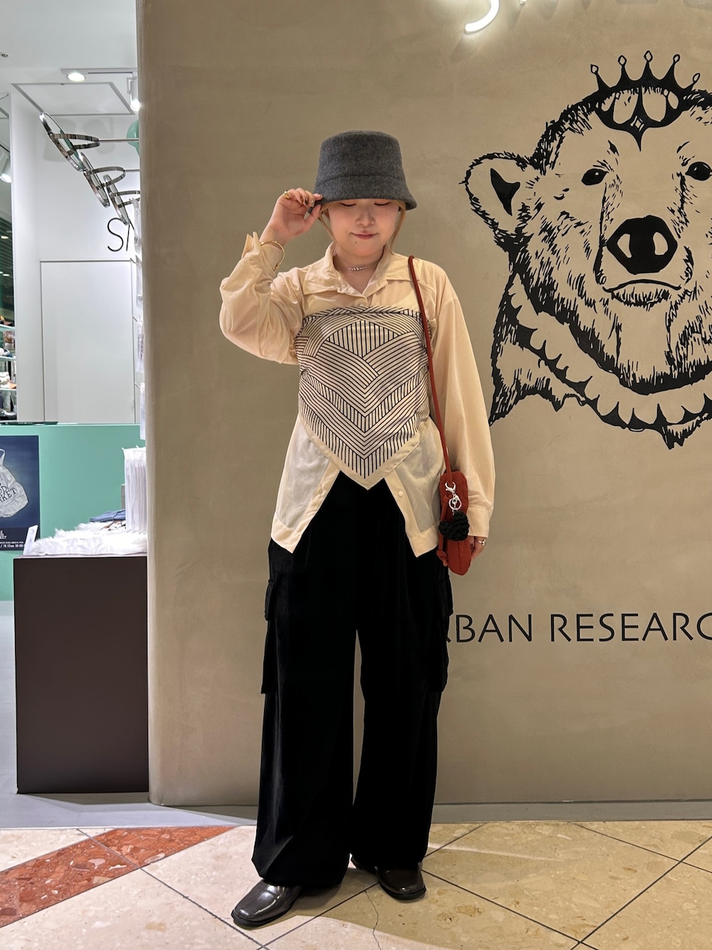 モノトーンコーデにスカーフアレンジ🧣 シンプルなシャツコーデもスカーフを胸元に巻くだけでコーデがパッと華やかになります! 今の時期はこの上からジャケットや、コートを羽織るのがおすすめです🧥