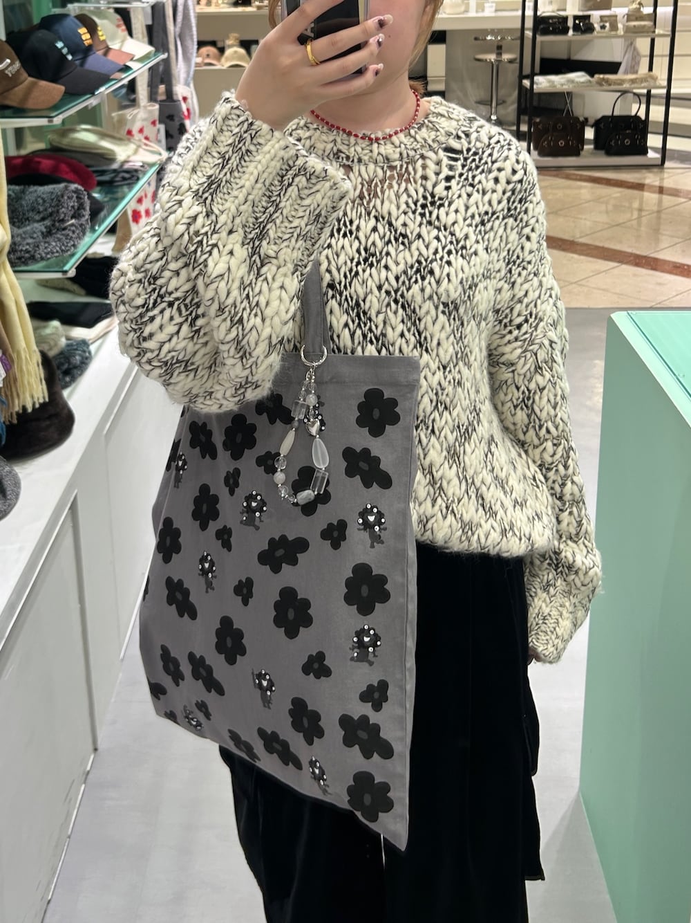 大人気のミャクミャクトートバッグに新色のグレーが登場🖤🩶 同色のキーチェーンをつけてアレンジしました✨ キーチェーンはスマホプレートをつけるとスマホホルダーとしてもお使いいただけます!