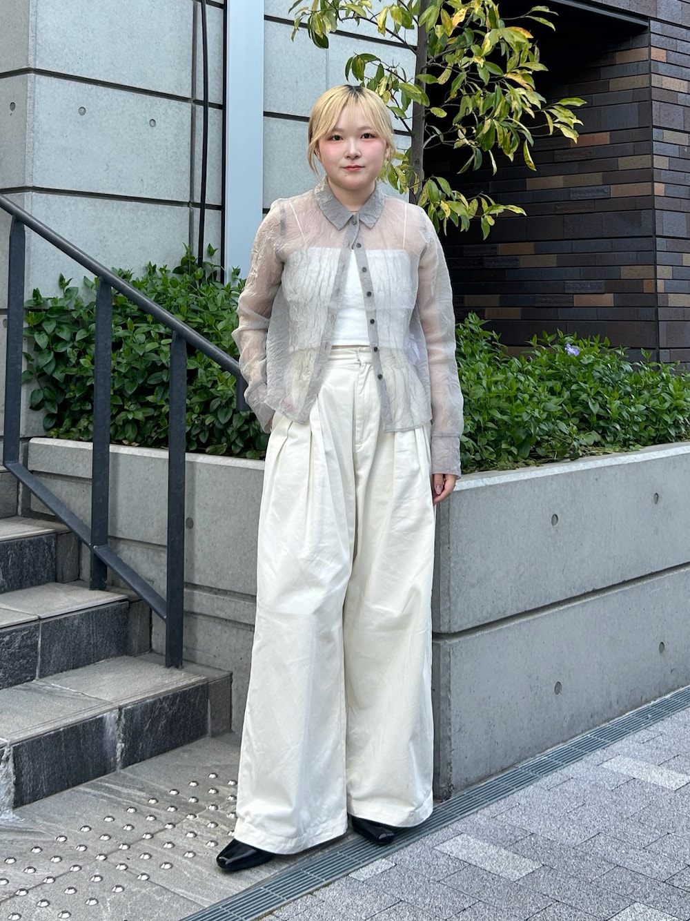 シアー感がかわいいシャツをメインに合わせたモノトーンコーデ🩶 シャツはコンパクトなシルエットなので一枚で着ても可愛いですし、スウェットやジャケットのインナーとしても活躍してくれます!