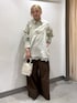 大人気のヴィンテージレースキャミソールのIVORYを使ったコーデ🤍 ミントグリーンのシャツとブラウンパンツで大人っぽいトーンでまとめました。 シャツはサラッとした素材でシワになりにくいです👍