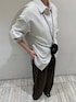 サイドのギャザーがポイントのストライプシャツ👔 絞り加減はお好みで調整できますが、個人的には結構絞ったほうが、このシャツのシルエットの良さが出てくれるのでおすすめです! 下のボタンは1、2つ空けるとよりすっきり着ていただけます🤍