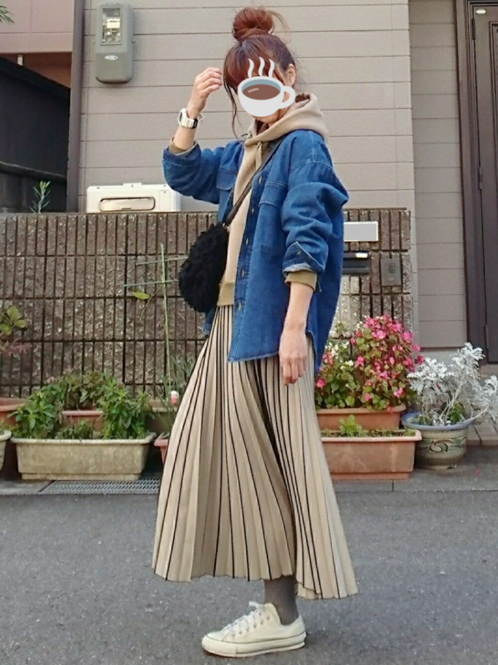 。・・。)ノ。. このプリーツの揺れ 好き✨ × デニム🎵 ( •ω•ฅ)*♡