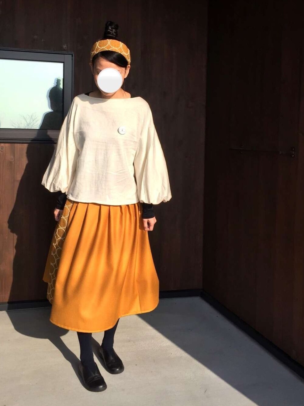 昨日失敗したワンピースを切ってスカートに変更しました。 ホワホワのトップスと合わせてみました。