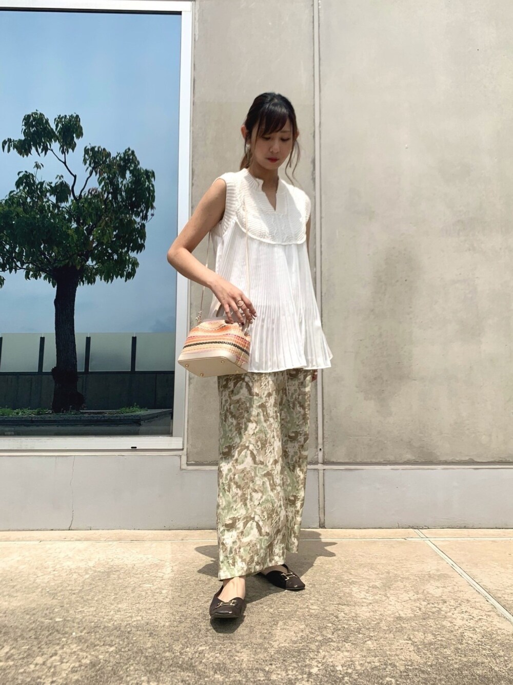 程よいAラインが可愛くて、切り替えのデザインは1枚でオシャレになるから選びがち😆 柄パンツでオシャレに✨