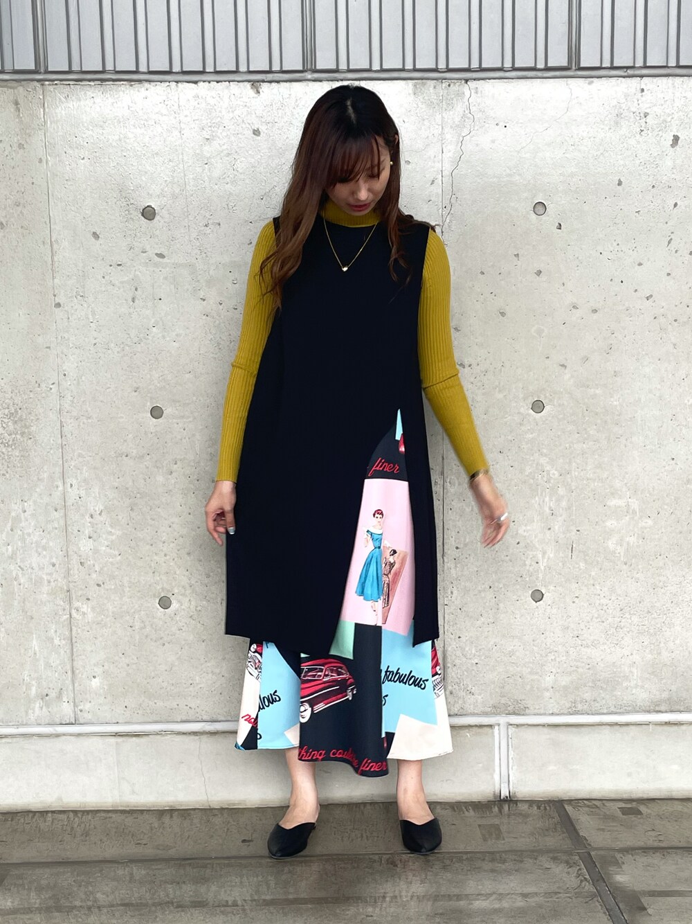 スリットから覗くビンテージ柄が可愛いすぎます😳 スッキリとしたニットなどで合わせて着ると長く着れますね✨