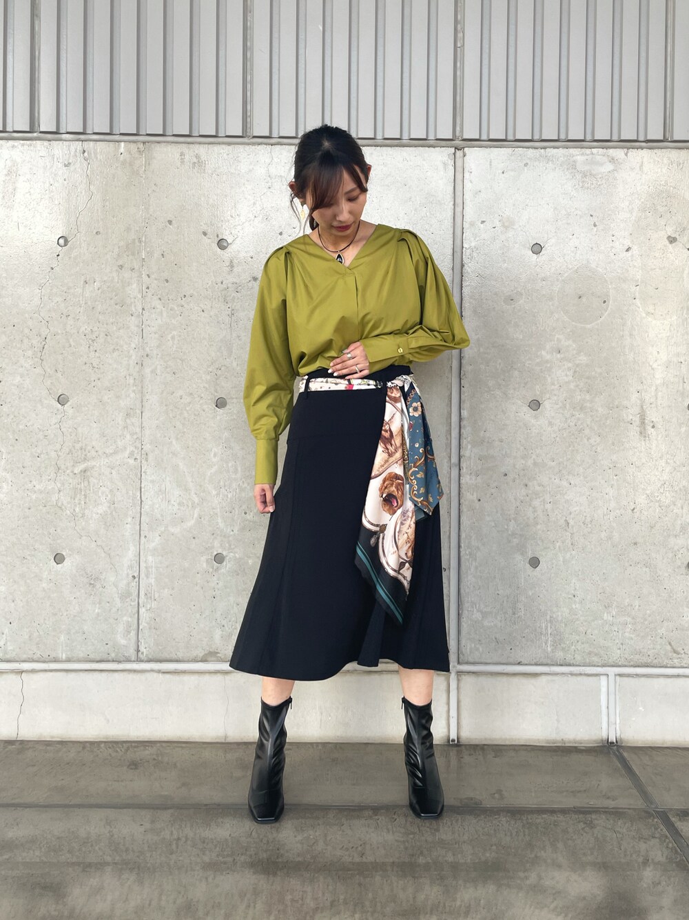 秋色ですね🍁 スカーフは取り外せるので、首やバッグに巻いてアレンジしても🙆♀️