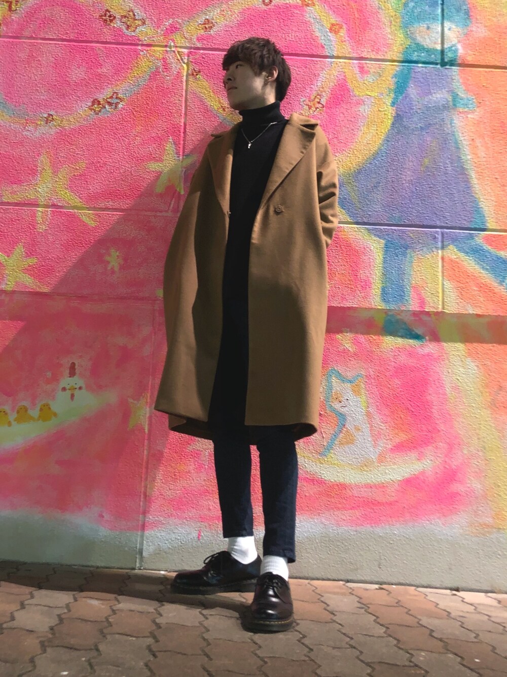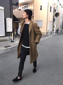 マルのチェスターコートを使ったコーディネート