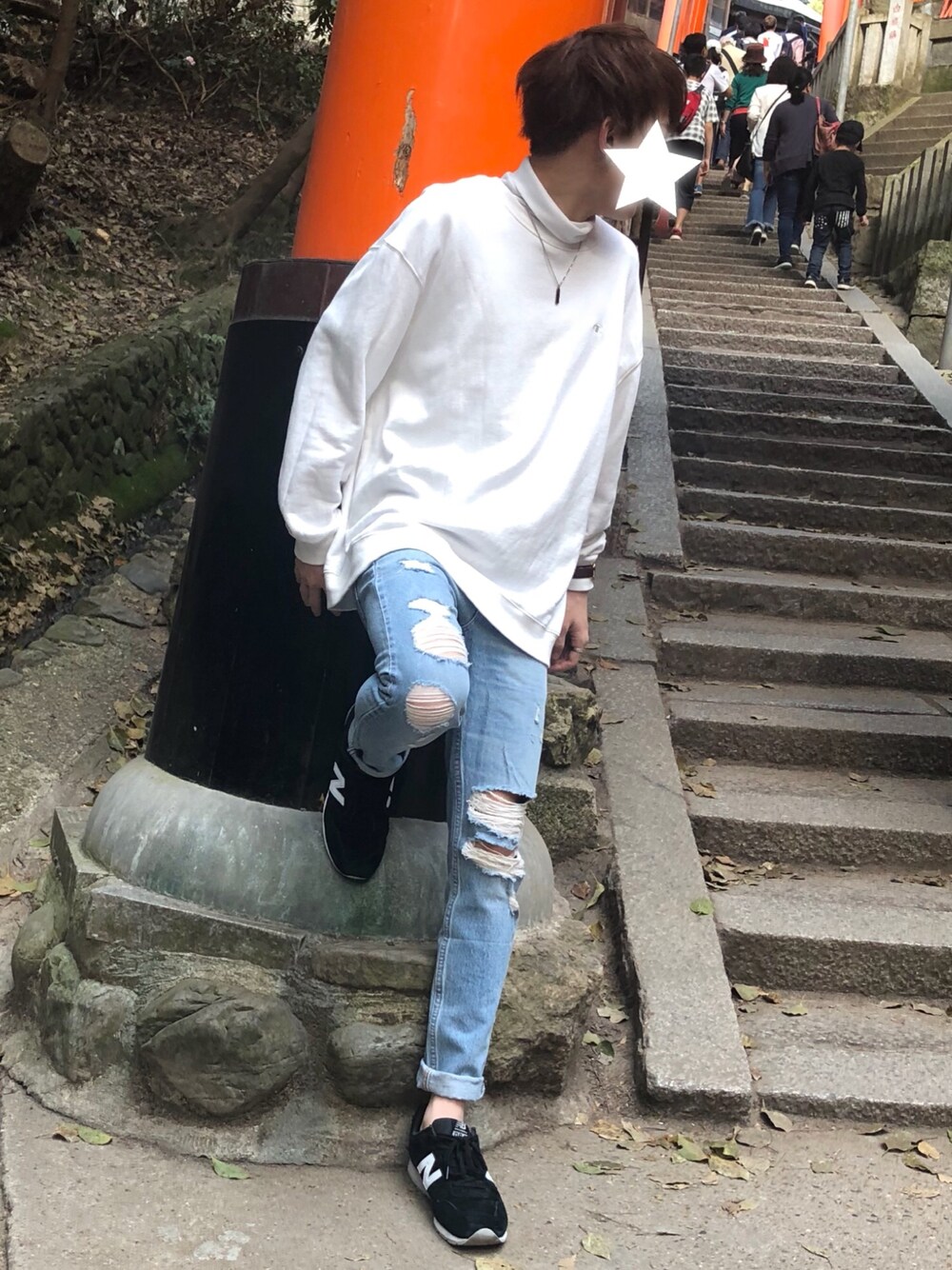 こんにちは!! 今回は京都に遊びに行った時の写真です🤳🤳 ビッグスウェットにダメージデニムを合わせてみました!! 首元が少し物足りなかったのでレイジブルーのタートルでボリューム感出してます! たまにはこう行った感じのシンプルめもいいですね(笑) スウェット M インナー M パンツ28 シューズ27.5