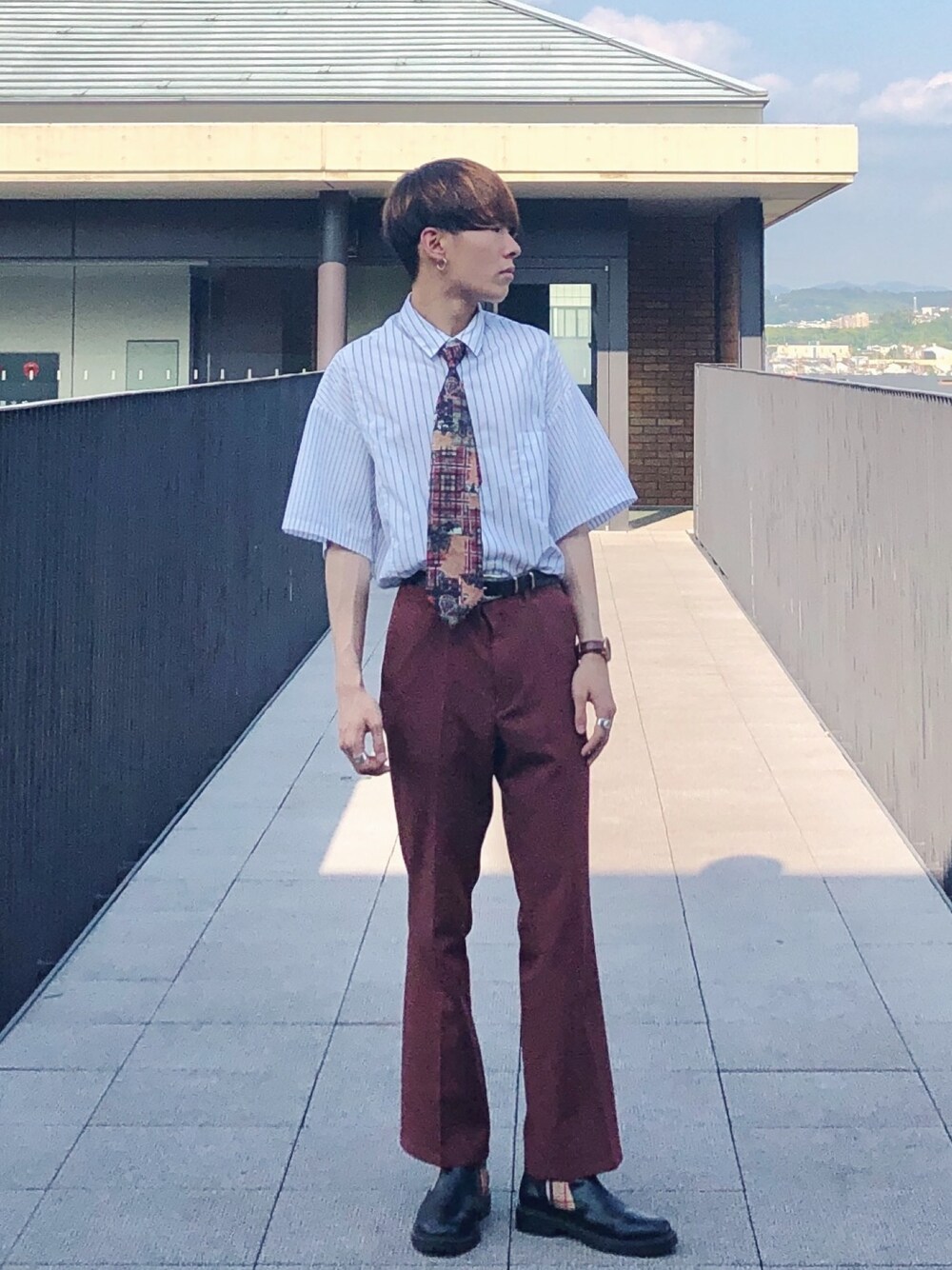 あまり見かけないネクタイコーデです☺️ スカーフもそうですが小物でアクセント付けれるとすごくこなれ感出るので本当にオススメです! アクセサリー以外に注目出来ると良さそうです😊 シャツ S パンツ M シューズ42 ネクタイ beep