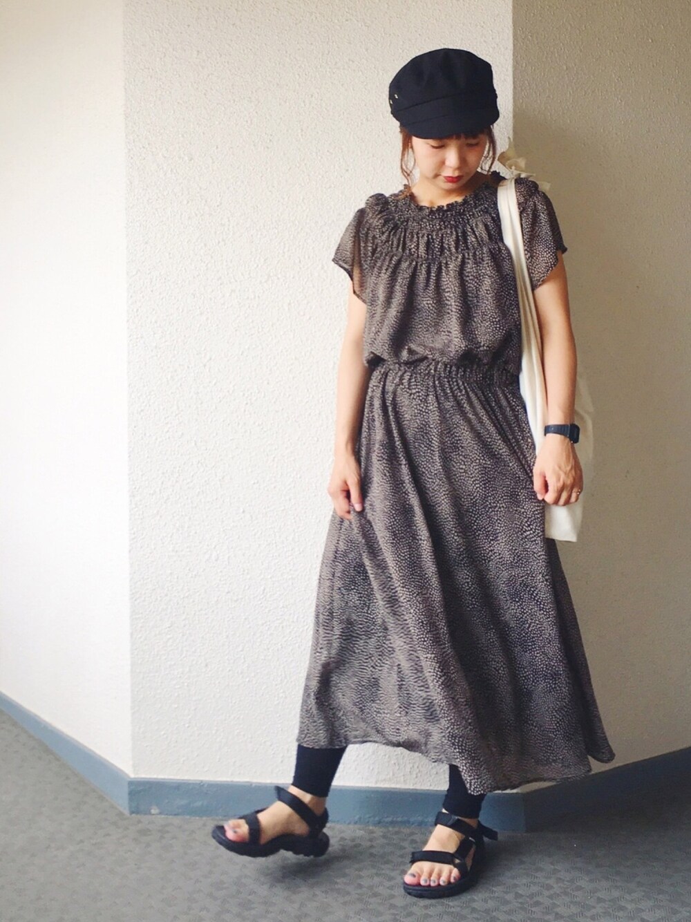 ゆったりワンピ♩☺︎ よく見るとヒョウ柄🐆💕←店員さんに言われるまで気づかなかった🤓 さらさらの着心地です〜🌞✨ ◯妊娠7ヶ月(27w)◯