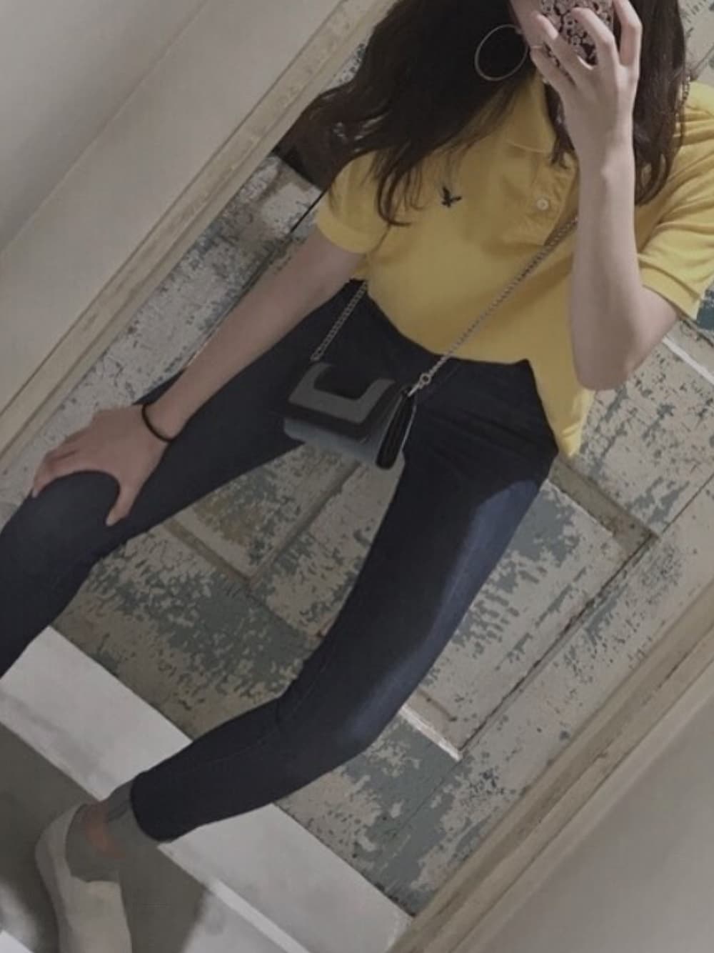 ポロシャツは古着屋で購入したものです! メンズで大きめのものを選びました! ポロシャツがゆったりしているので スキニーを履いて全体のシルエットが ゆったりしすぎないようにしました✔️
