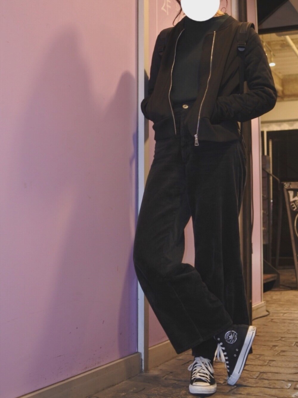ブラック系のコーディネートです◼ Niko and…のコーデュロイパンツ 色も形もすごくお気に入りです☆