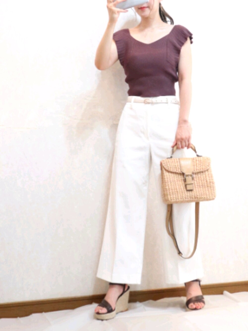 ご覧いただきありがとうございます♪ MERCURYDUOのトップスはZOZOTOWNのセールで半額ぐらいで買えました。 PLSTはサイズ展開豊富でジャストサイズが見つかるところが好きです。 リネンブレンドワイドパンツを着用しています。