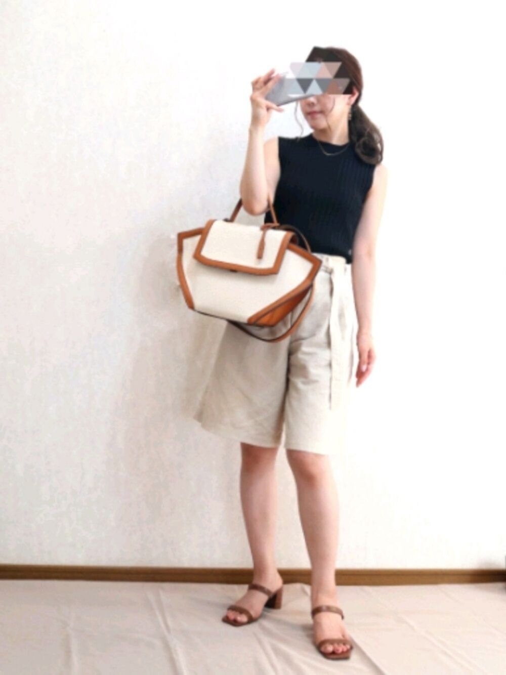 ご覧いただきありがとうございます♪ カジュアルは苦手なのですが、流行りのバミューダパンツに挑戦してみたくて、コーディネートを組んでみました。 UNIQLOのリネンブレンドベルテッドキュロットパンツは骨格ウェーブによく似合うと思います。 Charles&Keithのバッグはデザインがかなり気に入って、母と色・サイズ違いで購入しシェアしております(笑)