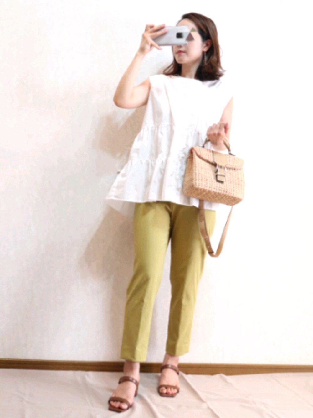 ご覧いただきありがとうございます♪ cocaで購入したブラウスはプチプラなのにノーアイロンでもシワにならず、お洗濯後もすぐ乾くのでとても気に入ってます! GLOBAL WORKのパンツもかなりストレッチが効いており動きやすいです♪