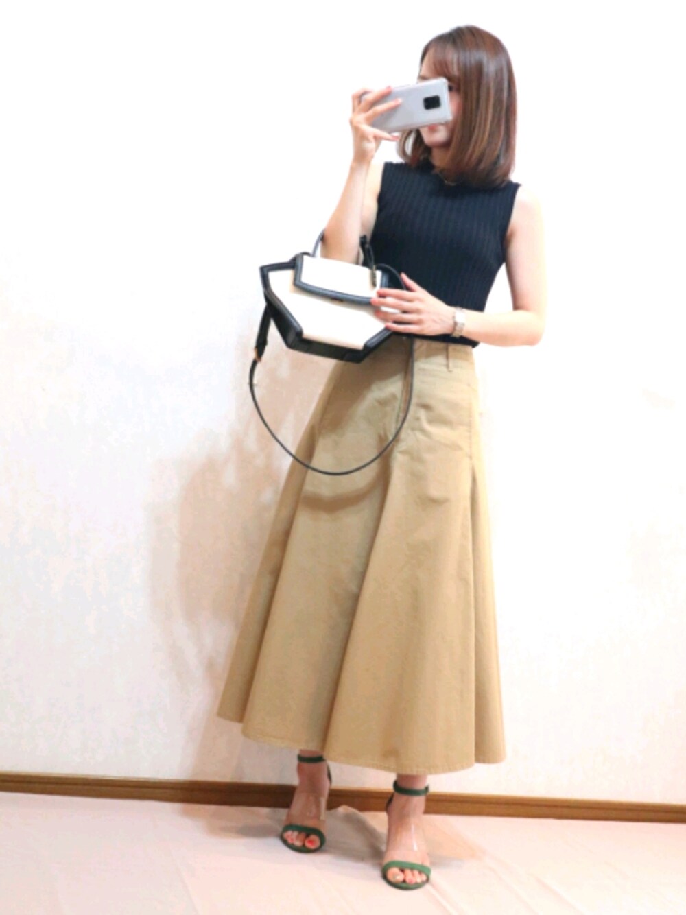 ご覧いただきありがとうございます♪ 何年も前にKBF+で購入したサンダルは、色が気に入って毎年たまに履いています^^ UNIQLOのコットンツイルフレアスカートはもう少しハイウエストだといいのになぁと履く度に思います…