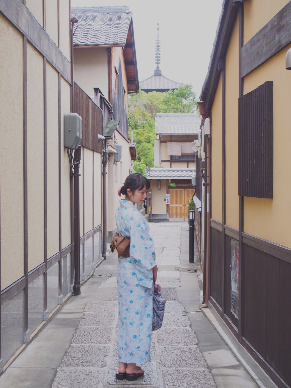 帯から浴衣までアンティーク。 髪飾りはお手製。