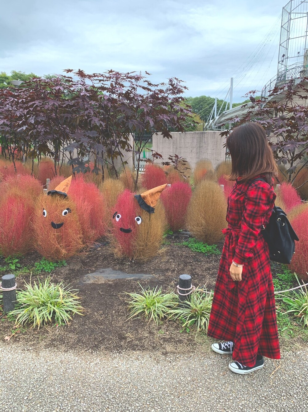 Halloweenの飾り付けしてあった🎃 赤のチェックのワンピースお気に入り