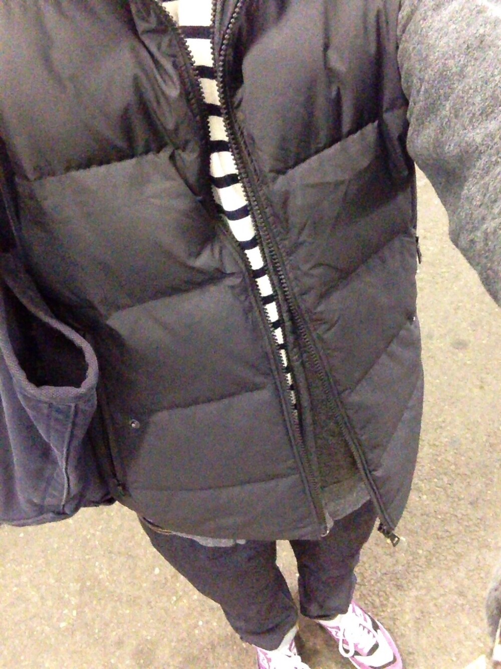 朝はだーいぶ寒くなりましたね。 ダウンベスト解禁。 今日はプレッピースタイル。 セルヴィッチデニムと ボーダー。