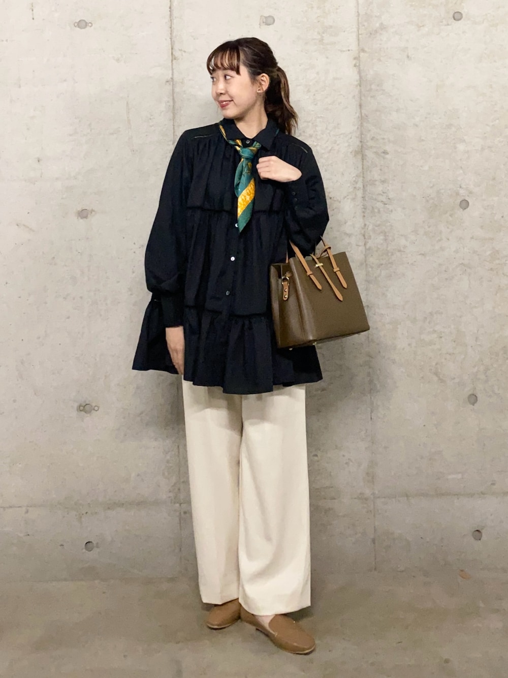 みてきち(SENSE OF PLACE ららぽーと海老名)のバンダナ/スカーフ「アソートプリントスカーフ」を使ったコーディネート
