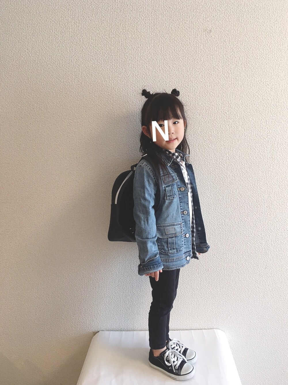 春といえばデニムジャケット🌸 娘のリクエストで今日もツノヘアーになりました🙈 変わりばえしないコーデですがいつも見て下さりありがとうございます💕 いいね コメント フォロー すごく嬉しいです😄✨