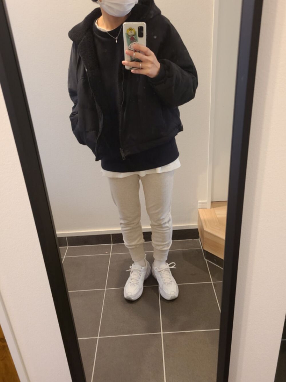 ウニクロのスウェットかジーウーか悩んで リブがあって細身のジーウーを購入。。 990円で大満足♪ NIKEのダサいスニーカーも 人とかぶらなくて凄く好き🥺