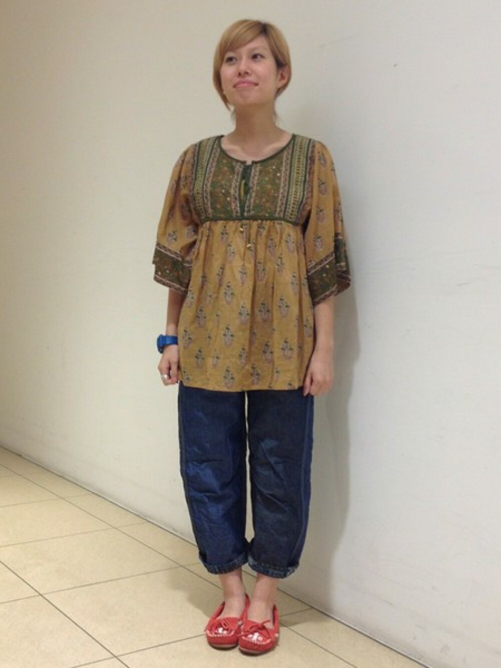アウトドアブランドのクロップドパンツにチュニックを合わせたコーディネートです。フェスにオススメコーディネートです。