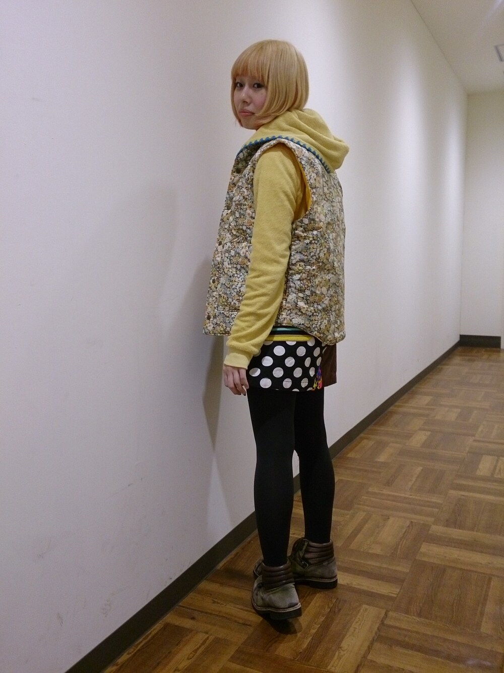 がらがらコーディネートです。イエローとグリーンの組み合わせが好きです。