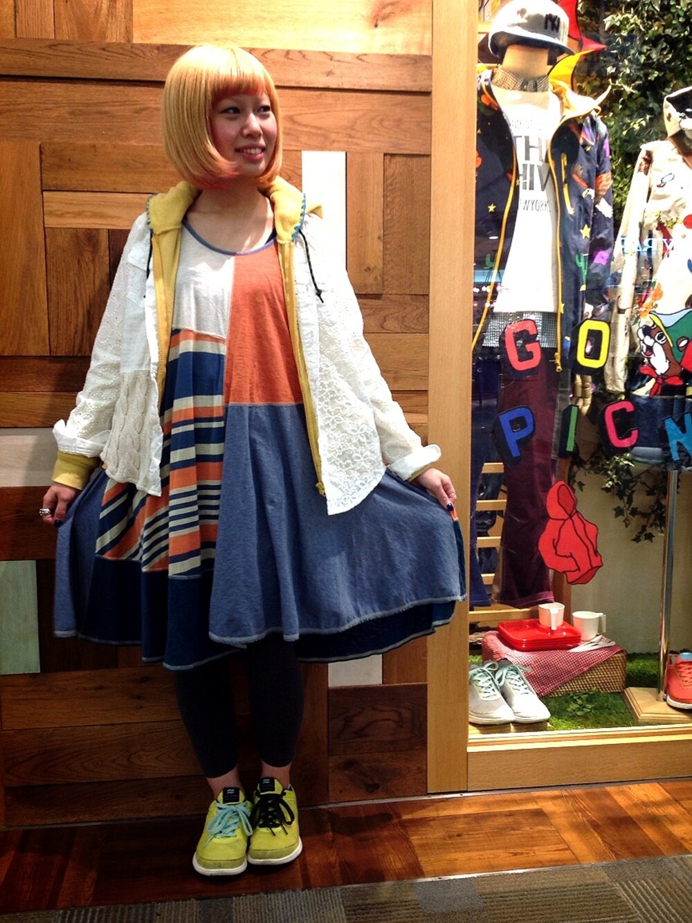 パステルカラーで甘く!足元はスニーカーでスポーティーに!