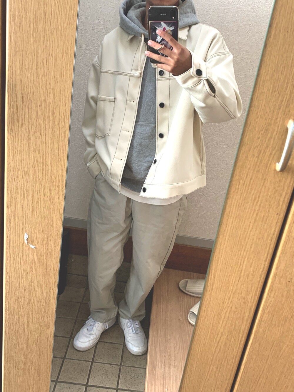 白系のワントーンコーデにしてみた どこかカジュアル過ぎない大人な感じに 最近洗った白スニーカーピッカピカ🤣