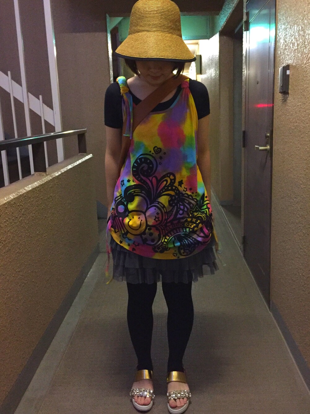ハデハデコーデ\(^o^)/ 激かわぁぁ♡♡♡ 歩いてるとちょっと視線を感じるけど… 気にしなーい\(^o^)/ 帽子はパシオスで¥1480♡ 一応UV\(^o^)/