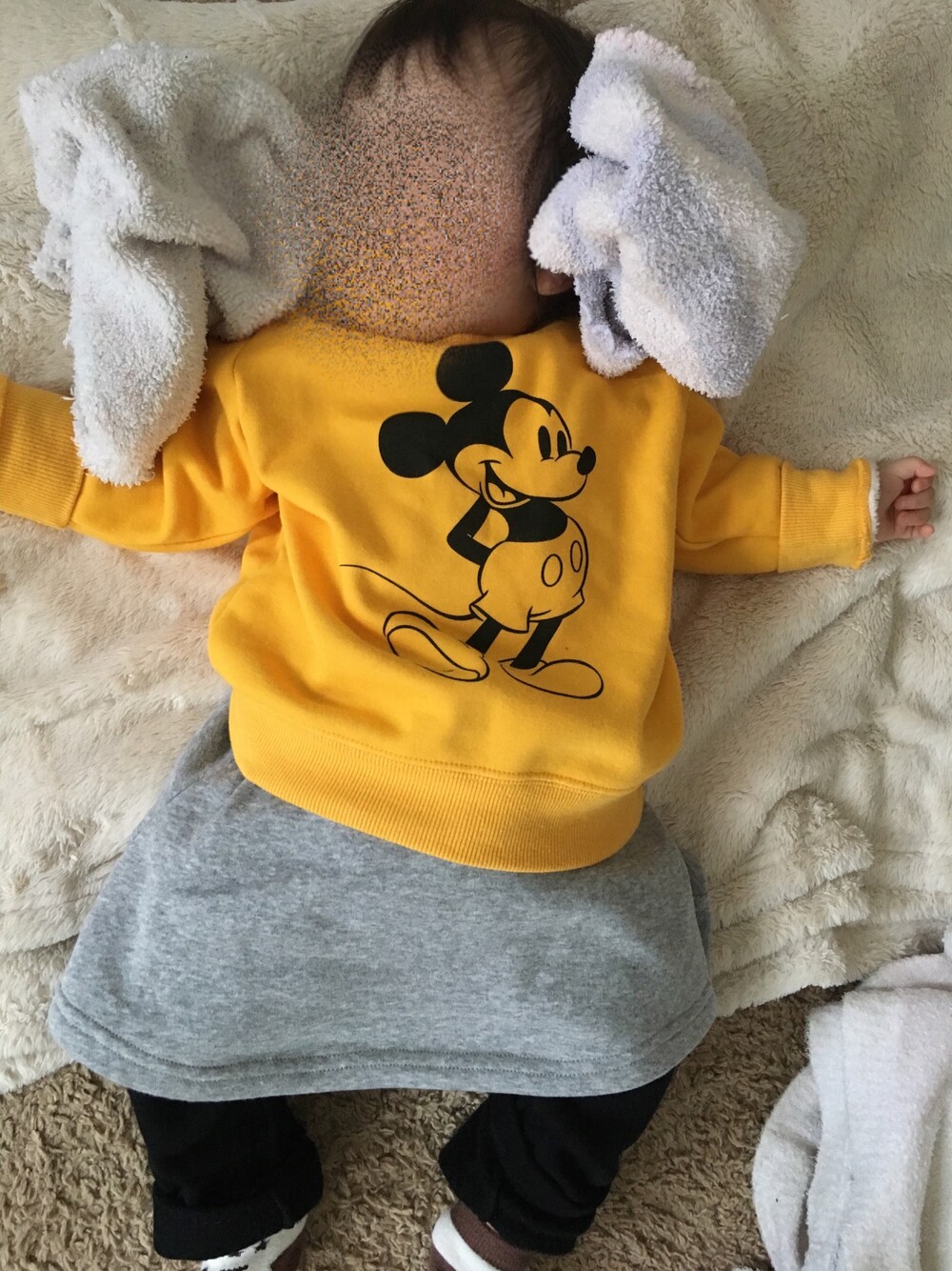 寝てる隙に… ボトムスはスカートとレギンスがくっ付いてるやつです(じじに買ってもらったやつ)