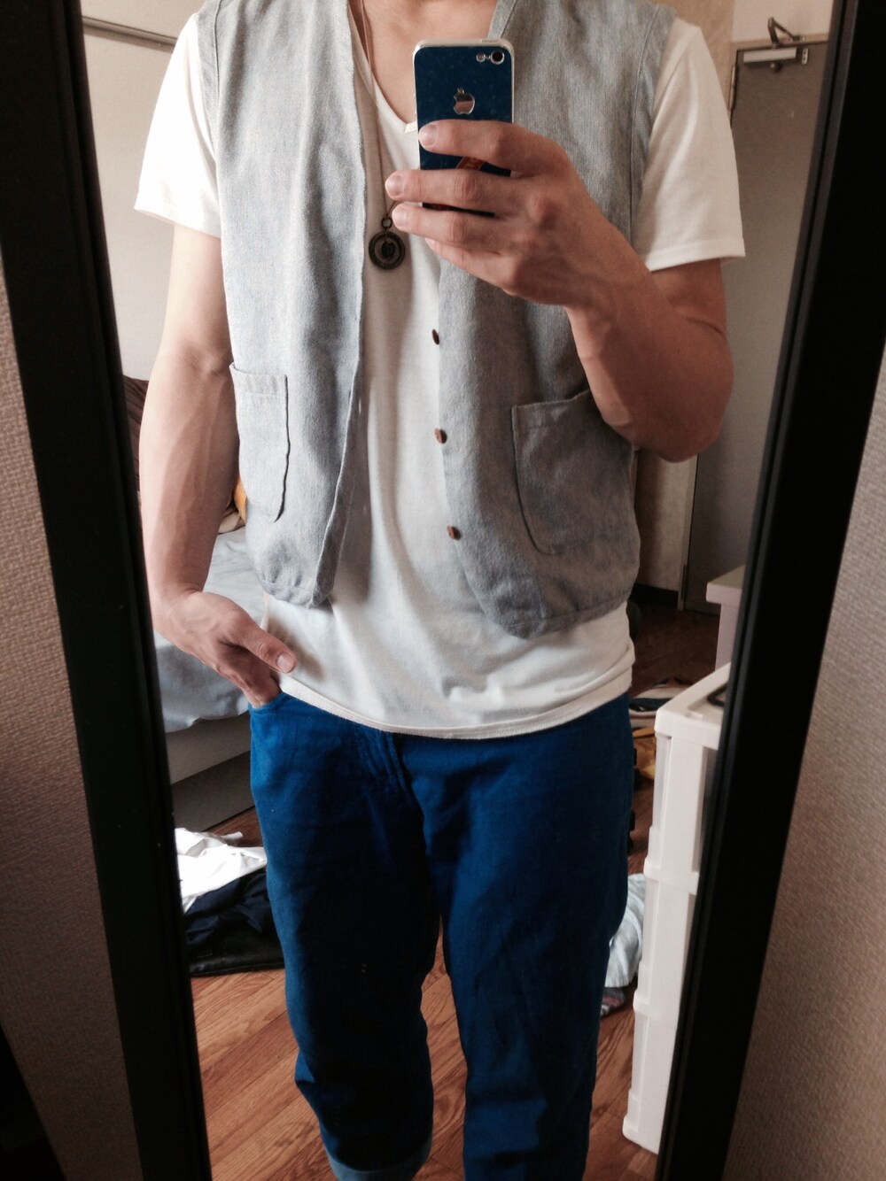 遅くなったけど todayコーデ。 今日は暑いかなと思ったので 夏らしく半袖で。 青のパンツで涼しさをだしました。