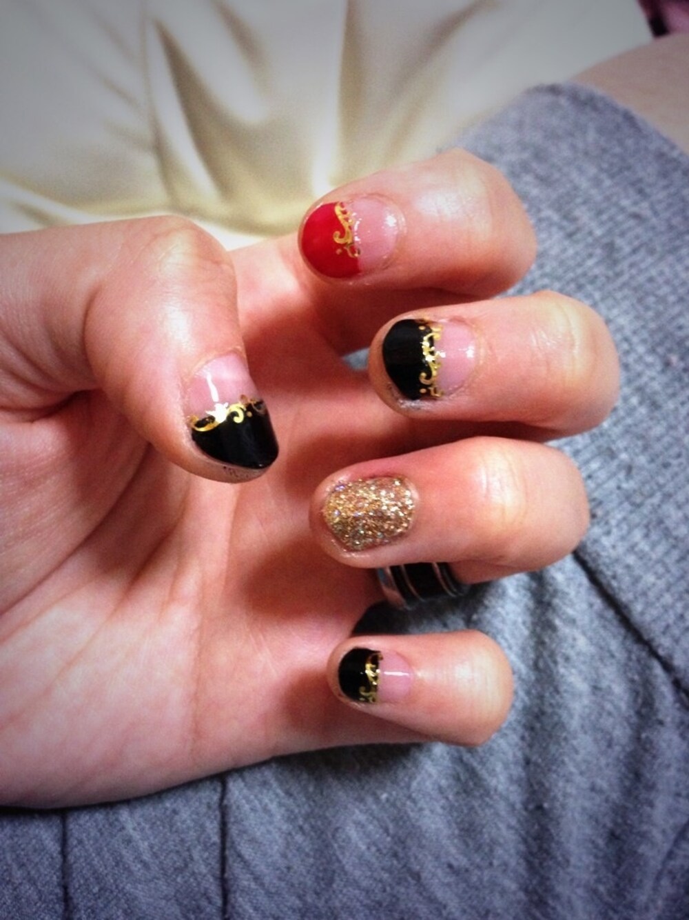 キャンメイクの黒 × 薬局で買った赤 × 薬局で買った金 と、シール‼‼←