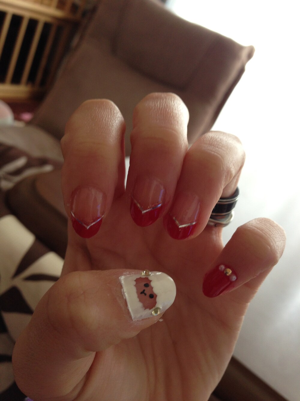 ひつじかいてみた。 キャンメイク白、黒 薬局で買った赤 ラインシール 雑貨屋さんのスタッズ、ストーン