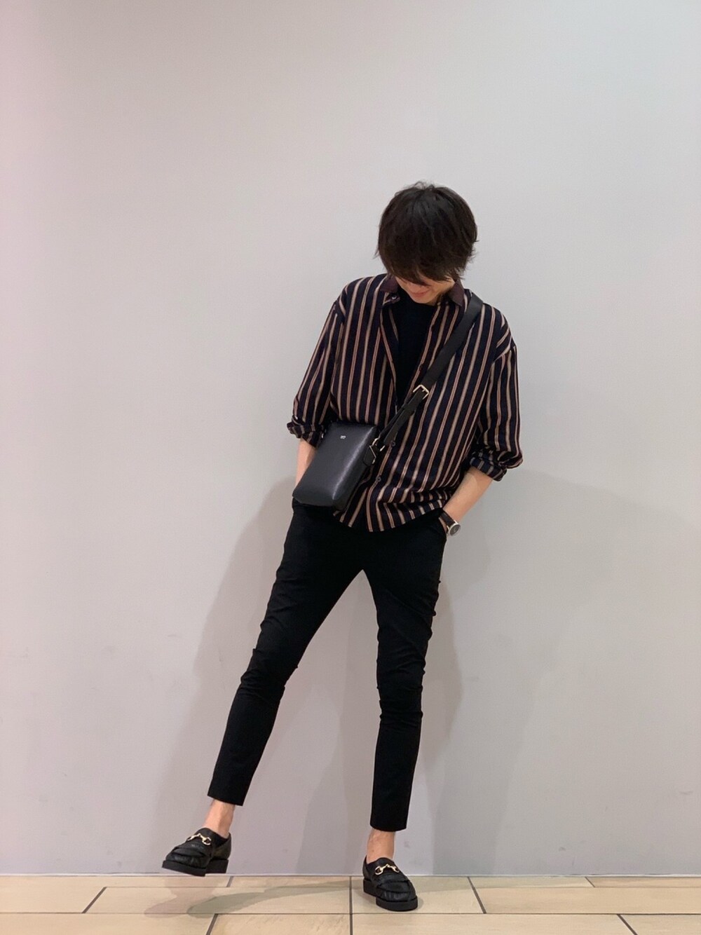 阿部まさひで(Lui's/EX/store TOKYO)のシャツ/ブラウス「チェックネックストライプシャツ」を使ったコーディネート