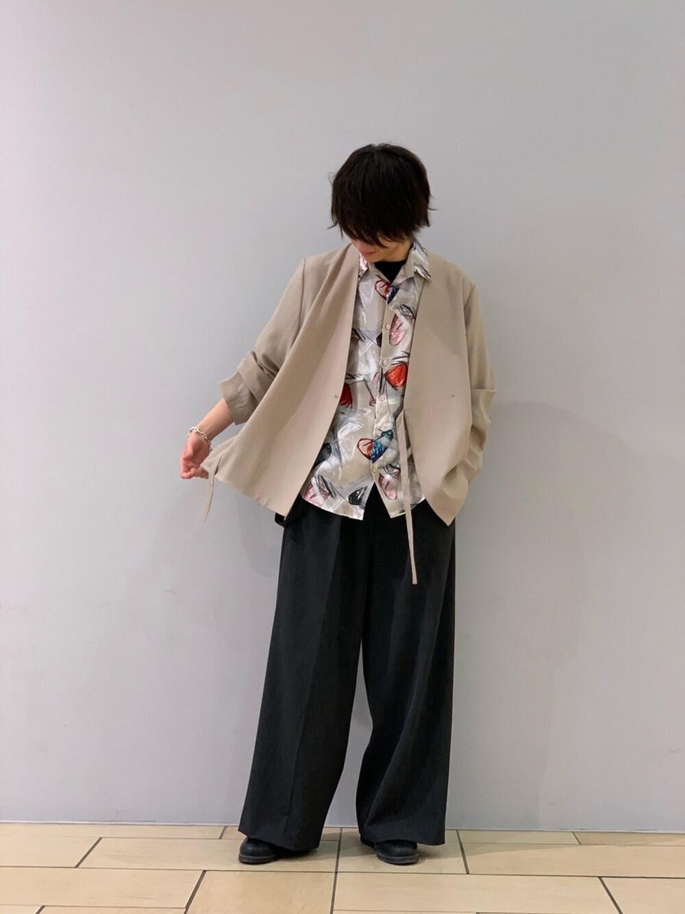 阿部まさひで(Lui's/EX/store TOKYO)のシャツ/ブラウス「ワイングラス柄 シルクシャツ」を使ったコーディネート